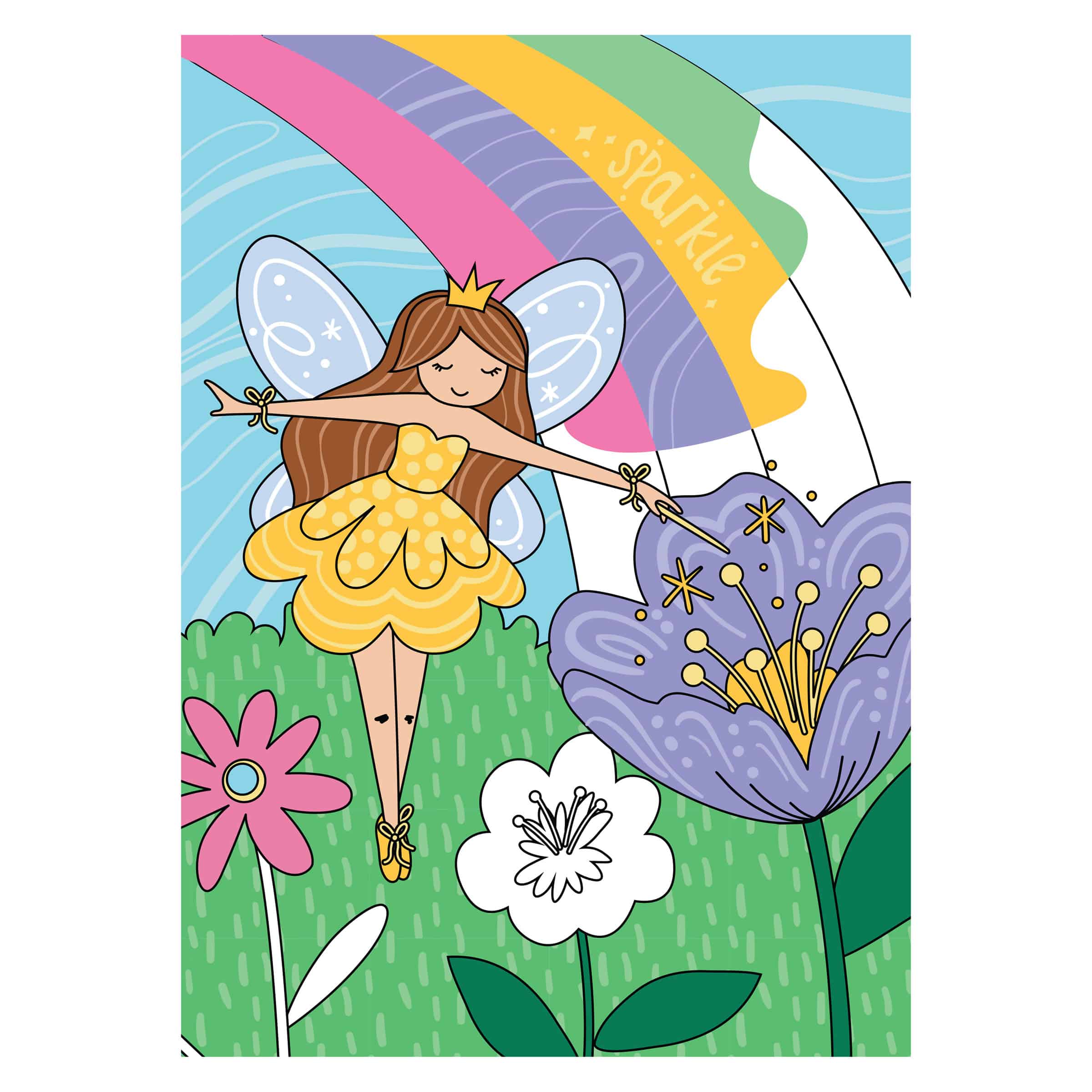 A magical adventure waiting to unfold. With each sweep of a marker, hidden fairy wings flutter into view, rainbows appear across the page, and castles shimmer under a canopy of colour.