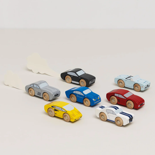 Get those engines revving and little imaginations racing with the Le Toy Van Classic Wooden Sports Cars — a stunning collection of seven retro-style racers that bring timeless charm and high-speed fun to every playroom.