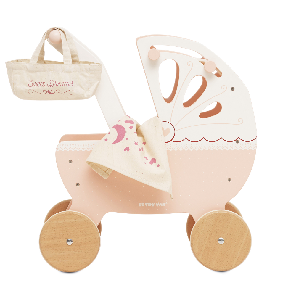 Looking for the perfect gift: With it's nostalgic design and exquisite craftsmanship, the Le Toy Van Retro Doll Pram makes a heartwarming gift for birthdays, Christmas, or any special celebration. Pair it with the Le Toy Van Sleigh Cot or High Chair for a beautifully coordinated nursery-inspired play set that little ones will treasure for years to come.