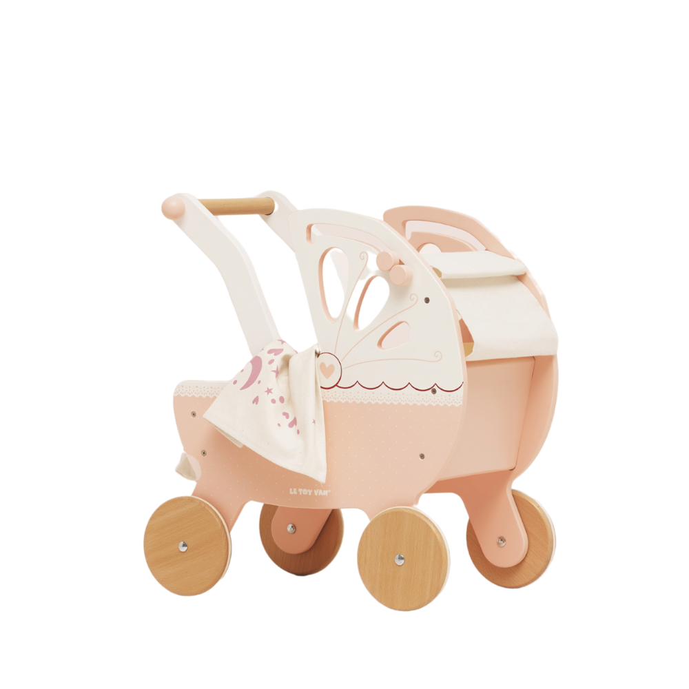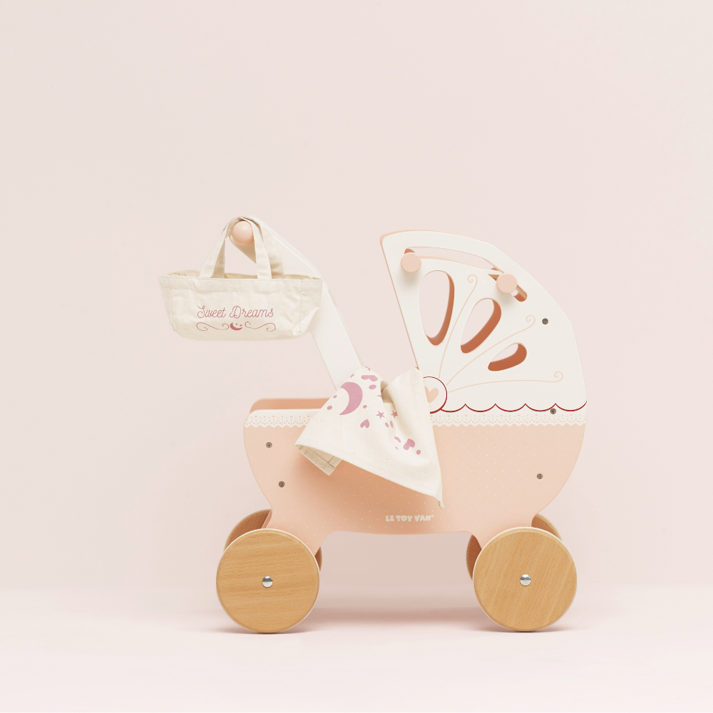 The Le Toy Van Retro Wooden Doll Pram is a charming, vintage-inspired stroller that turns every playtime into an adventure. With it's classic curved silhouette and soft pastel tones, this beautifully crafted pram captures the magic of old-fashioned play — where imagination, care, and storytelling come to life.