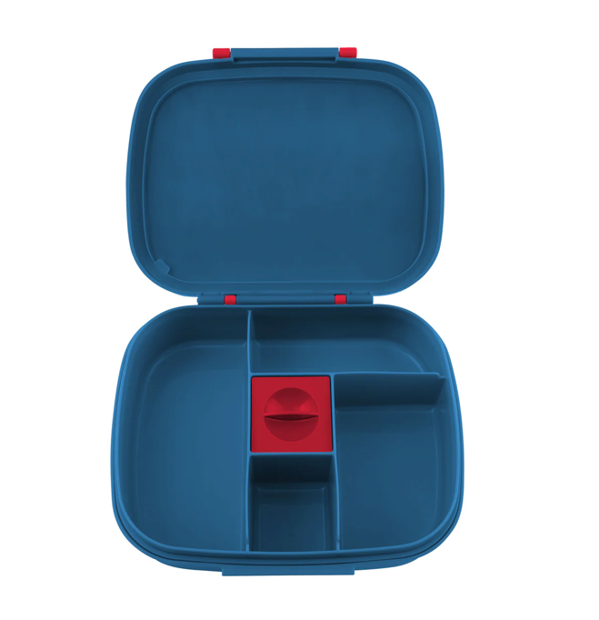 - Includes a bento box with an airtight seal on the lid and 5 compartments including a sauce compartment with a leak proof lid