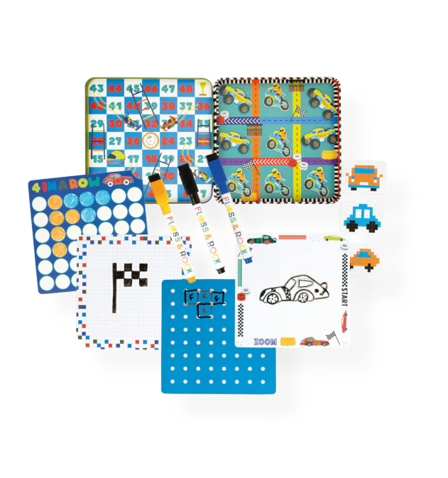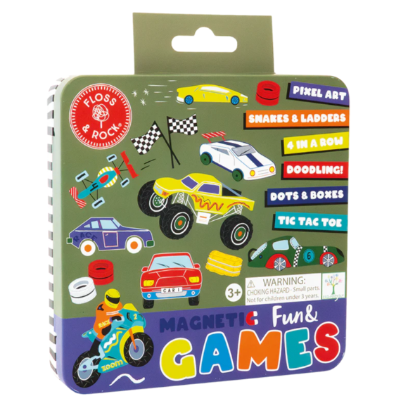Start your engines and race into endless adventure with the Magnetic Fun & Games – Cars tin by Floss & Rock — where colourful cars, speedy racetracks, and creative challenges come to life!