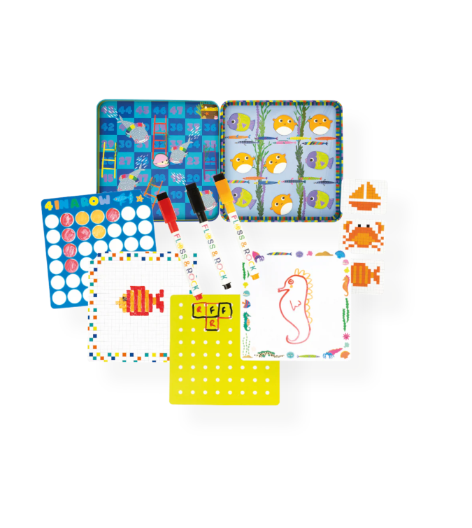 Brimming with vibrant underwater charm, this six-in-one magnetic tin is perfect for keeping little explorers entertained wherever they go. Whether at home, in restaurants, or on holiday, it’s a compact companion that sparks creativity, concentration, and hours of screen-free fun.