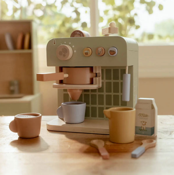 The Little Dutch Wooden Coffee Maker transforms everyday play into a comforting ritual — where tiny baristas pour, stir, and serve with big imagination.