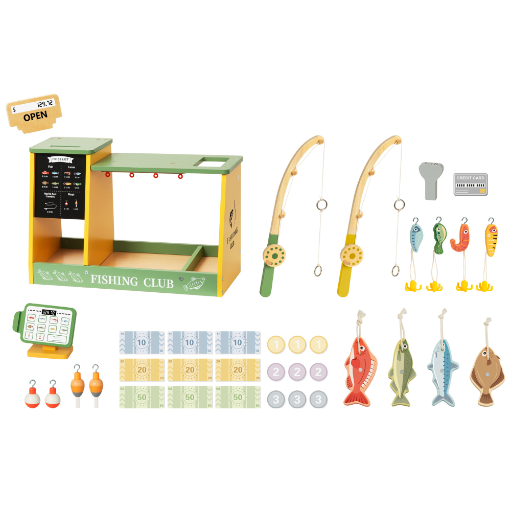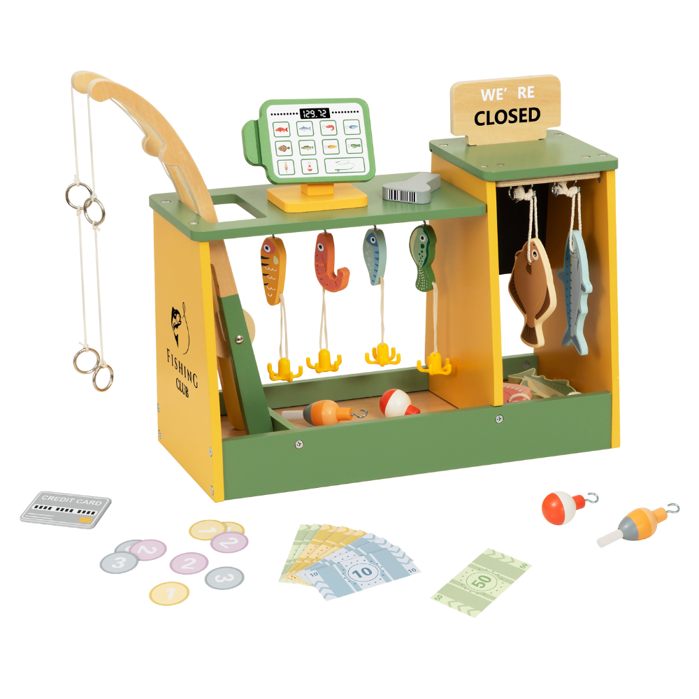 Welcome to the Fishing Club — where little ones can catch, sort, and sell the freshest “fish” in town. This beautifully crafted Wooden Fishing Shop invites little ones into a playful world of role play, storytelling, and hands-on discovery.